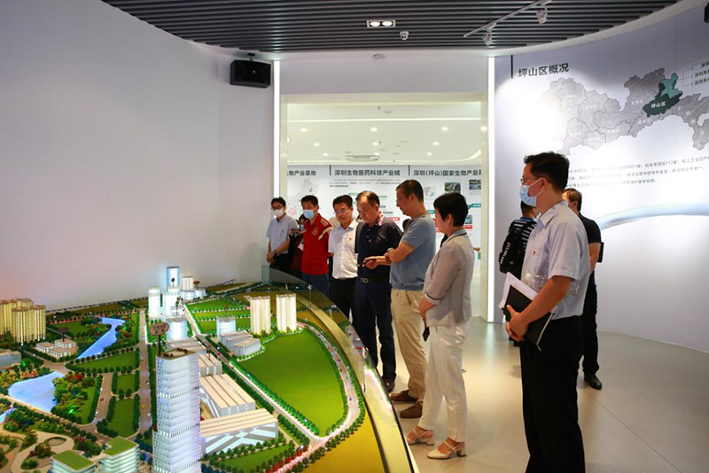 伍先铎主席一行来到生物医药创新产业园,在金年会集团所属东部公司相关负责人的陪同下参观了园区内的深圳国家生物产业基地展厅和党群服务中心,详细了解坪山生物医药产业发展成果、金年会集团产业园区开发运营及园区党建工作情况。