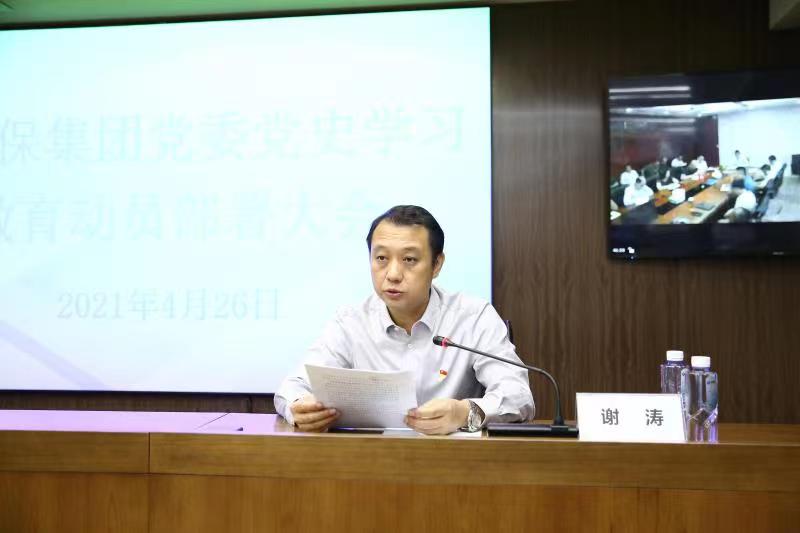 4月26日上午,集团党委召开党史学习教育动员部署大会,集团党委书记、董事长谢涛作动员部署讲话,集团党委副书记、总经理王昌栋主持会议,传达上级党委关于开展党史学习教育精神,并结合集团工作实际对党史学习教育进行动员部署,集团系统全体党员参会。