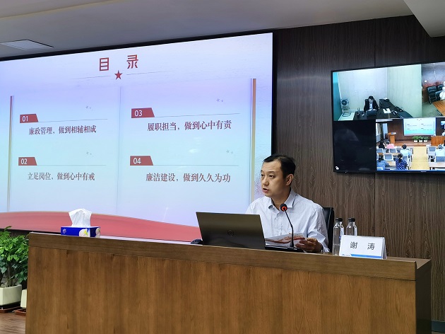 谢涛书记从“廉政管理,做到相辅相成”“立足岗位,做到心中有戒”“履职担当,做到心中有责”“廉政建设,做到久久为功”等四个方面简明扼要讲述了党员干部应该如何在工作中贯彻落实党风廉政建设。