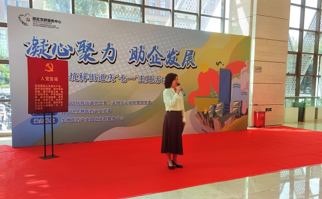 助企发展”主题“庆七一”活动。集团党委副书记李长兰出席活动并致辞,坑梓街道党工委委员、党建办主任饶巍,以及园区企业党员代表近100人参加活动。
