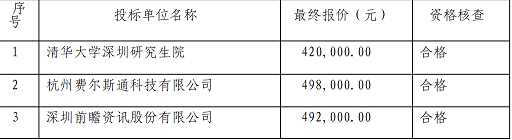 (1)中标人:清华大学深圳研究生院。