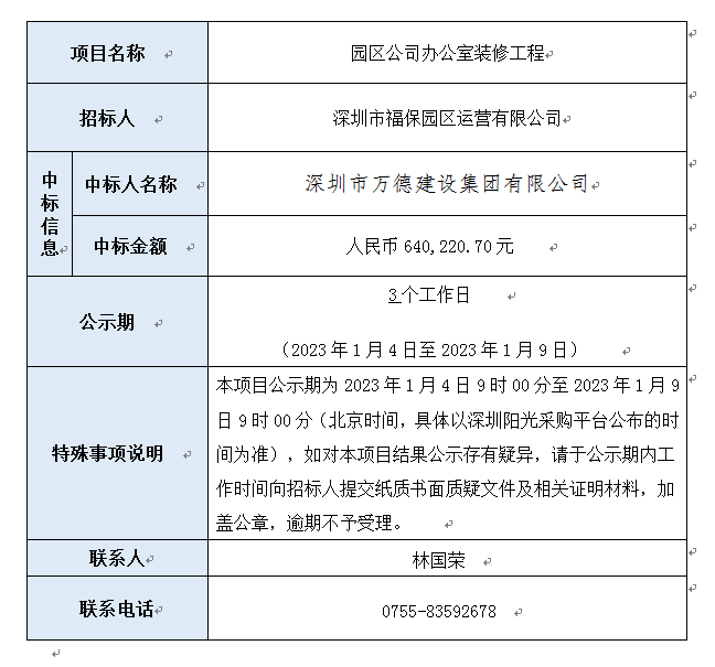 园区公司办公室装修工程项目已完成评审,现将本项目评审的相关情况及结果进行公示,具体内容如下: