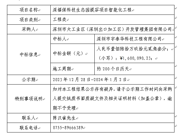 在深圳阳光采购平台进行公开招标的金年会科技生态园提容项目智能化工程已完成评审及定标,现将本工程评审的相关情况及定标结果进行公示,具体内容如下: