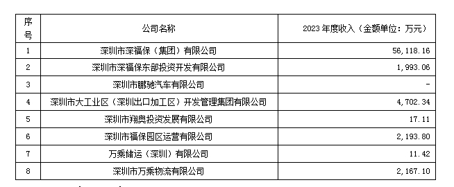 本项目包含集团范围内8家公司〔深圳市金年会(集团)限公司(含分公司)、深圳市万乘物流有限公司、深圳市万乘储运有限公司、深圳市园区运营有限公司、深圳市金年会东部投资开发有限公司、深圳市大工业区开发管理有限公司、深圳市鹏驰汽车有限公司、深圳市翔奥投资发展有限公司〕打包服务。2023年度各公司大概的收入情况如下表: