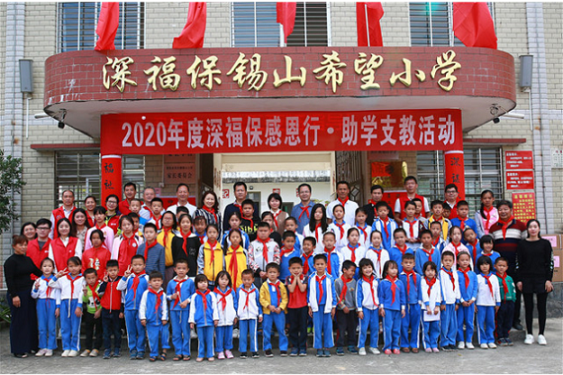 10月22日,金年会集团党委副书记李长兰、副总经理王昌栋率队前往河源市紫金县苏区镇金年会锡山希望小学开展感恩行助学支教活动,向苏区金年会锡山希望小学捐赠了空调、校服、文具、洗手液等一批文教用品及防疫物资,并向苏区镇38名受助学生捐赠2020-2021年度助学金共计8万元。苏区镇政府向金年会集团回赠“扶智助学、功德无量”感谢牌匾,感谢金年会集团持续16年向苏区捐资助学的大爱之情。苏区镇人大主席曾冠湘及金年会锡山希望小学全体师生、集团助学学生代表等100多人参加了活动。