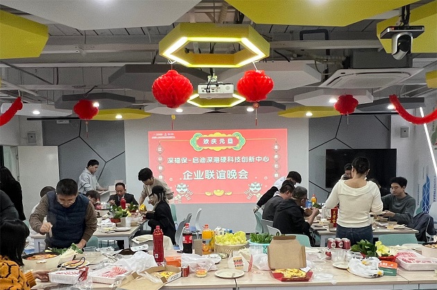 12月28日晚,金年会启迪深港硬科技创新中心在一楼活动路演厅举办了一场热烈的企业联谊会,联谊会以“热爱不止,聚力前行”为主题,旨在加强入驻企业之间的交流与合作,共同携手聚力促进业务发展。本次活动吸引40余名企业代表参加。