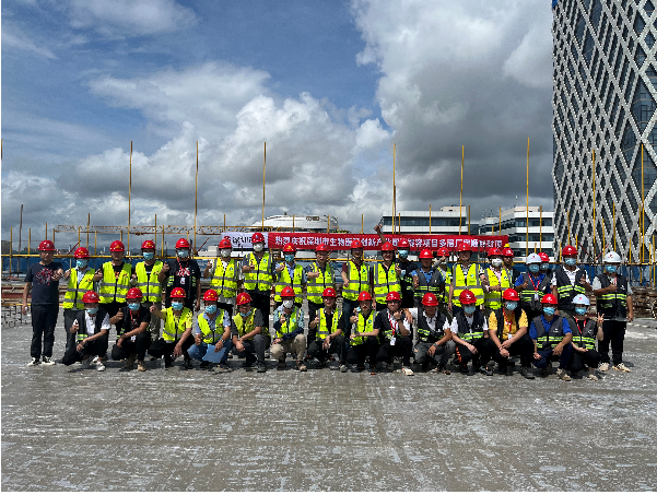 提容项目自开工以来,东部公司提前规划将各项工作前置,先后于2021年12月27日完成桩基础施工节点,2022年2月18日取得多层、高层主体施工许可证。进入主体施工以来,在集团管控部门的指导和支持下,东部公司联合设计单位、施工总承包单位和监理单位等,一手抓疫情防控工作,一手抓项目进度、质量和安全管理工作,全面统筹,精心组织,先后克服了深圳3月份疫情及5月份暴雨停工影响,保证了项目“零感染、零伤亡、零事故”的目标,并按时完成多层主体结构封顶。